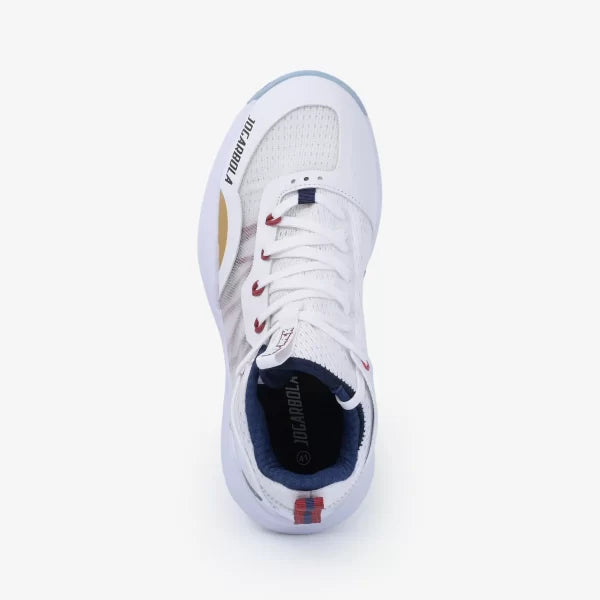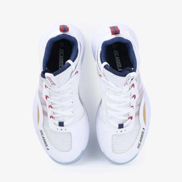 Màu trắng chủ đạo nhẹ nhàng, kết hợp logo trong suốt độc đáo giúp đôi giày trở nên nổi bật mà không quá phô trương – phù hợp cả thi đấu và phối đồ streetwear hàng ngày.