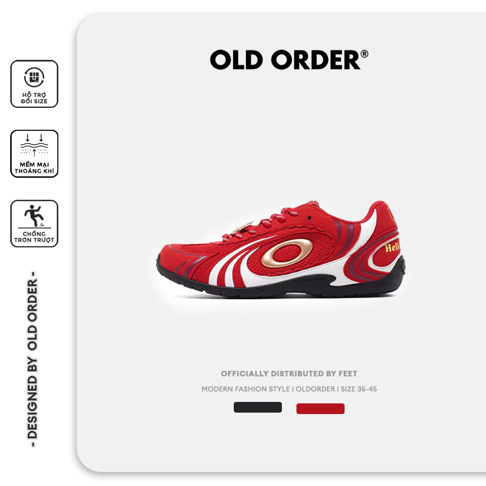 Dòng giày chạy bộ Turbo-Lite của OLD ORDER được thiết kế với phiên bản nhẹ nhàng, kết hợp hài hòa giữa phong cách retro, tính năng động cơ học và hơi thở hiện đại. Điểm nhấn là logo chữ "O" xoáy biểu tượng được đặt nổi bật ở phần bên giày.